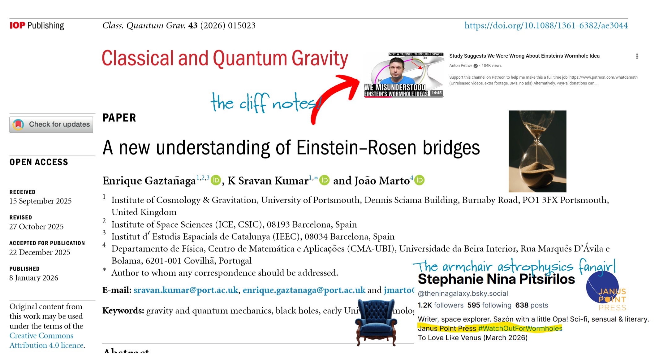 Anton Petrov’s video: “Study Suggests We Were Wrong About Einstein’s Wormhole Idea”